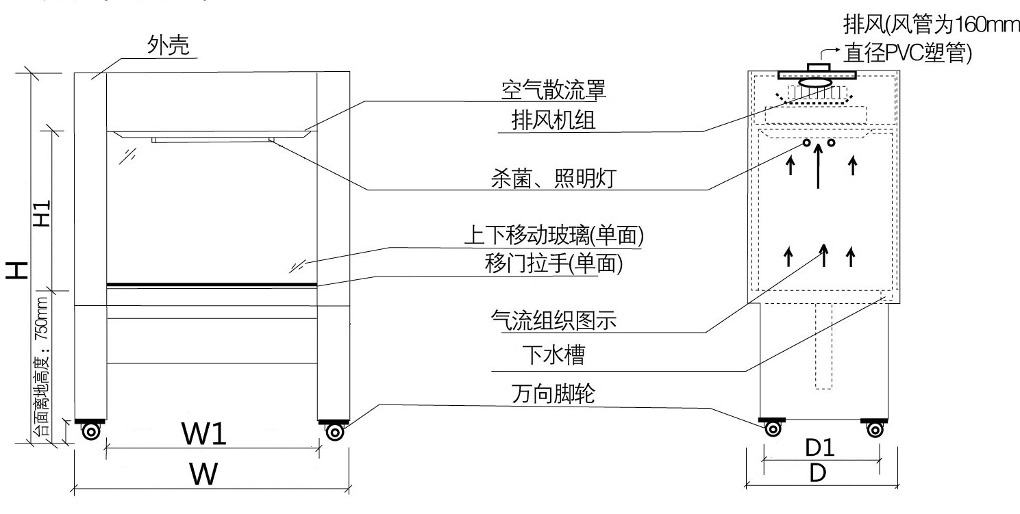 4、工作區為全SUS304拉絲不銹鋼(或者PP材質),易清洗,防腐蝕